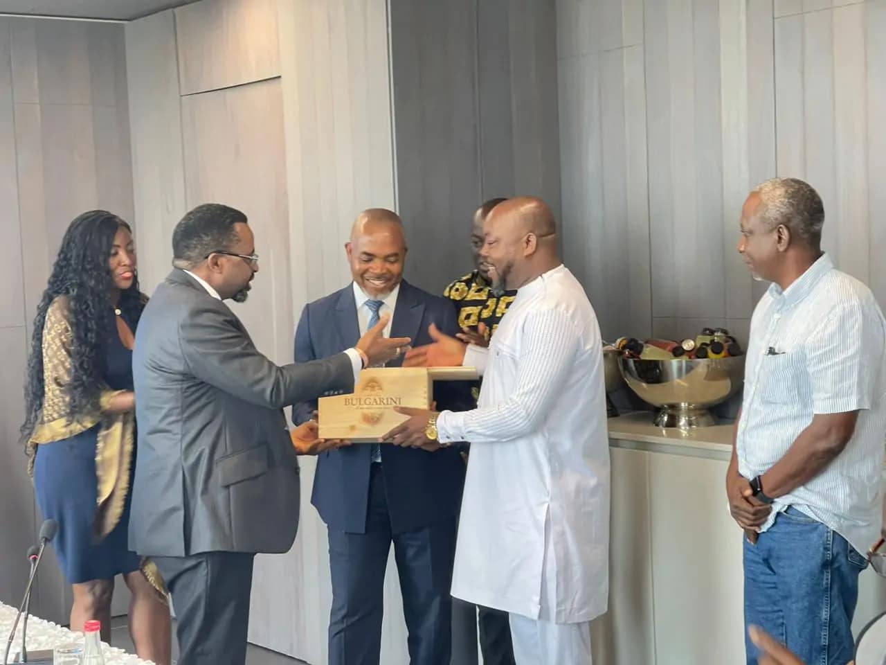 As a mark of solidarity and appreciation, the Importers and Exporters Association of Ghana presented a gift to Governor Dr. Asiamah in recognition of his leadership and efforts to stabilize the Ghanaian economy since assuming office.
